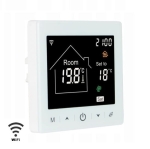 Przewodowy termostat dwu-czujnikowy BC-400WiFi-E z eleganckim szklanym ekranem dotykowym, dedykowany jest do kontroli temperatury pokojowej w budynkach mieszkalnych i komercyjnych , gdzie zainstalowane są elektryczne systemy grzewcze; ogrzewanie podłogowe (maty i folie grzewcze) lub grzejniki elektryczne (zależnie od wybranego trybu czujnika). Wbudowany moduł WiFi pozwala na zarządzanie ogrzewaniem poprzez internet - czytelna i prosta w obsłudze aplikacja TUYA dostępna jest dla urządzeń mobilnych na systemy IOS oraz Android ( w języku angielskim).