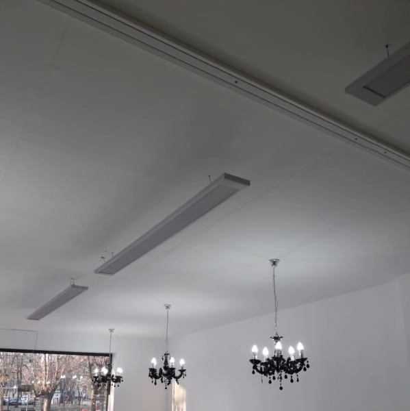 Panele grzewcze ILMIT AlluM przeznaczone do tzw. montażu wysokiego, mogą być montowane zarówno na ścianie (od 1,8-2,0 m) jak i na suficie (od 2,5-2,7m) za pomocą załączonych uchwytów z regulacją kąta nachylenia. Estetyczny, nowoczesny wygląd grzejnika w neutralnym kolorze jasno szarym/ aluminium o matowym wykończeniu oraz kompaktowe rozmiary i niewielka waga sprawiają, że dobrze komponuje się z innymi elementami wystroju pomieszczeń. Może być stosowany do ogrzewania biur, warsztatów, pracowni, gabinetów, restauracji, sklepów, czy obiektów użyteczności publicznej oraz dziennych pomieszczeń mieszkalnych. Może być montowany także w pomieszczeniach wyższych, o większych kubaturach oraz na zewnątrz budynków w zadaszonych i osłoniętych powierzchniach (np. zabudowany taras, ogród zimowy). Dzięki kompaktowemu kształtowi korpusu, o przekroju trapezowym, grzejnik podsufitowy wizualnie wygląda na węższy i cieńszy.