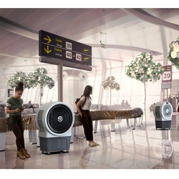- wydajny przenośny klimatyzer wodny do zastosowań przemysłowych, w dużych obiektach