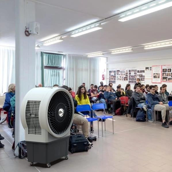 Urządzenie zaprojektowane we Włoszech , dedykowane do zastosowań przemysłowych, komfortowe i praktyczne w użytkowaniu. Może być sterowane zarówno z pozycji wbudowanego panelu jak i zdalnie za pomocą w pełni funkcjonalnego pilota. Klimatyzer posiada funkcję chłodzenia wyparnego oraz 3 tryby pracy (poziomy mocy). Regulowane łopatki poprawiają efekt chłodzenia, a łatwe w czyszczeniu filtry ułatwiają bieżącą konserwację.