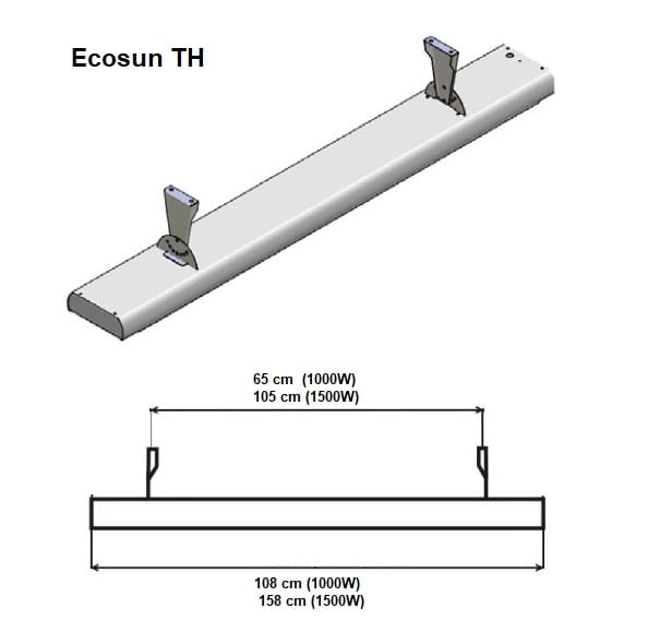 Panel grzewczy Ecosun Th może być montowany na ścianie lub na suficie za pomocą załączonego uchwytu z regulacją kąta nachylenia. Estetyczny, nowoczesny wygląd grzejnika w kolorze czarnym o wykończeniu matowym oraz kompaktowe rozmiary sprawiają, że świetnie komponuje się z innymi elementami wystroju pomieszczeń takich jak biuro, warsztat, pracownia, gabinet, restauracja, sklep, kościół czy muzeum. Może być stosowany w pomieszczeniach o większych kubaturach oraz na zewnątrz w zadaszonych i osłoniętych powierzchniach (zabudowany taras, ogród zimowy). Obudowa malowana proszkowo, pokryta warstwą antykorozyjną dla ochrony przed działaniem czynników zewnętrznych.