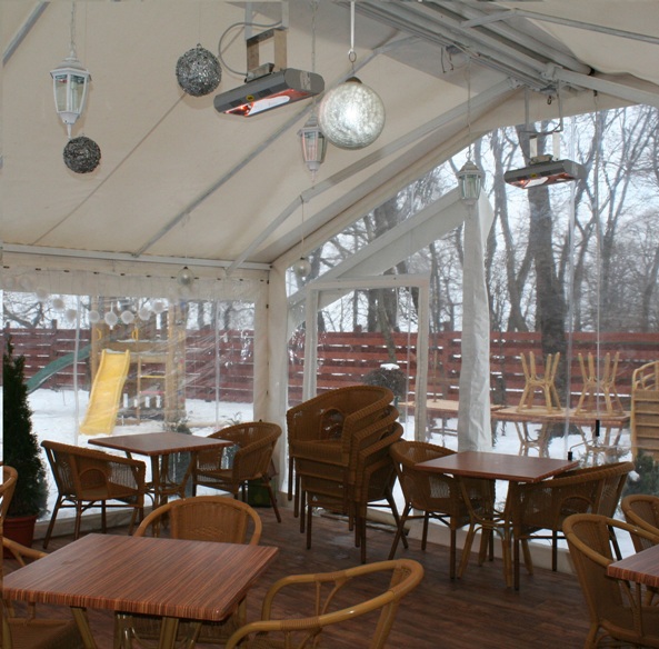 - Zastosowania ogrzewanie strefowe wewnątrz i na zewnątrz pod zadaszeniem, do ogródków restauracyjnych, kawiarni, na tarasy , patio, do ogrodów zimowych, w namiotach cateringowych, na halach wystawowych i produkcyjnych, w obiektach hodowlanych, stajniach i in. do susz