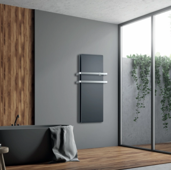 ICON 10 grzejnik hybrydowy (pionowy) z relingami, dualny panel grzewczy 1000W (kolory: biały, grafit)
