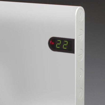 W urządzeniu zastosowano programowalny termostat cyfrowy, regulacja temperatury odbywa się za pomocą intuicyjnego panelu sterowania, pozwalającego na ustawienie żądanej temperatury podstawowej, aktywację i ustawienie parametrów funkcji osłabienia temperatury (dziennej, nocnej) oraz inne opcje, dzięki którym grzejnik będzie działać w sposób optymalny i satysfakcjonujący dla użytkownika. Temperatura, na którą nastawiony jest grzejnik jest wskazywana na podświetlonym, czytelnym wyświetlaczu na panelu przednim. Pracę urządzenia sygnalizuje czerwona dioda LED. Grzejniki NEO mierzą temperaturę w pomieszczeniu z częstotliwością minutową, a w razie wykrycia nawet niewielkiego wahania, odpowiednio dostosowują swoją pracę,kompensując zmianę poprzez wzmocnienie lub osłabienie ogrzewania. Temperatura powierzchni grzejnika nie przekracza 75° C, nie powoduje to przypalania cząsteczek kurzu, obecnego w powietrzu.