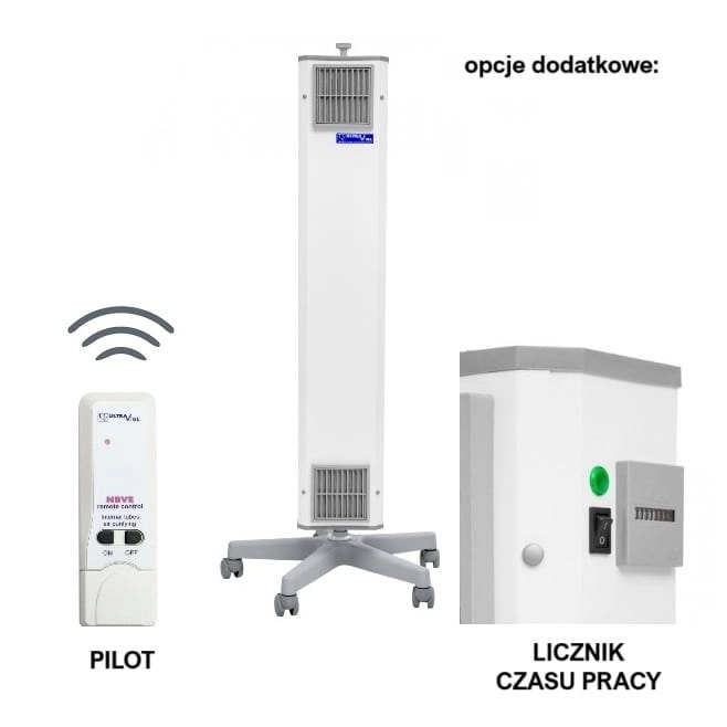 - Pilot zdalnego sterowania - służy do zdalnego,bezpiecznego włączania/wyłączania lamp bakteriobójczych bezpośredniego działania, także z innego pomieszczenia . Odbiornik wbudowany w lampę.