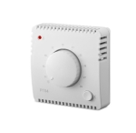 Elektroniczny regulator natynkowy produkcji europejskiej.  Urządzenie dokonuje pomiaru temperatury za pomocą  wbudowanego czujnika powietrznego. Ustawienia temperatury za pomocą pokrętła do manualnej regulacji temperatury w zakresie 11-29 °C po 0,5 °C. Możliwość uruchomienia automatycznego nocnego obniżania temperatury (o 3 °C przez 8 godzin). Regulator przeznaczony do instalacji naściennej, także na puszce podtynkowej