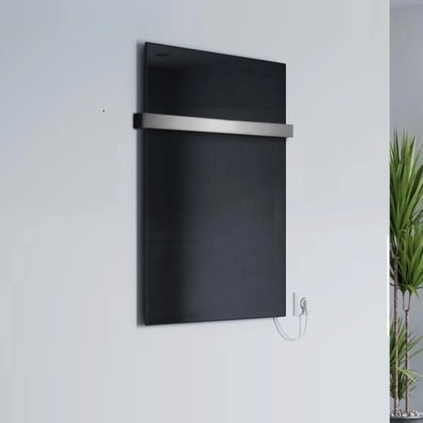 VCIR-G 600W TR szklany panel grzewczy na podczerwień, łazienkowy grzejnik promiennikowy z relingiem (ścienny), czarny